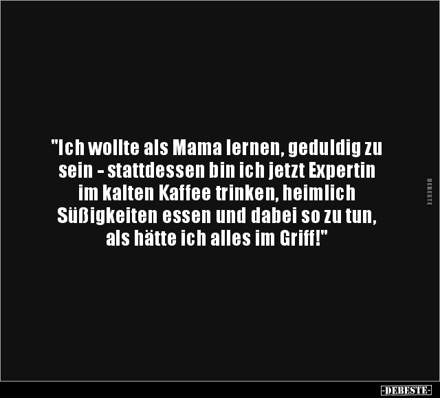 "Ich wollte als Mama lernen, geduldig zu sein - stattdessen bin ich jetzt Expertin im kalten Kaffee trinken, heimlich Süßigkeiten essen und dabei so zu tun, als hätte ich alles im Griff!"