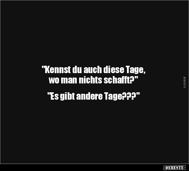 "Kennst du auch diese Tage, wo man nichts schafft?" "Es gibt andere Tage???"