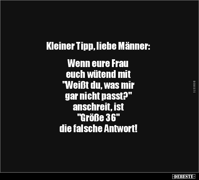Kleiner Tipp, liebe Männer: Wenn eure Frau euch wütend mit "Weißt du, was mir gar nicht passt?" anschreit, ist "Größe 36" die falsche Antwort!