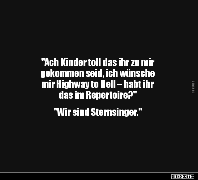 "Ach Kinder toll das ihr zu mir gekommen seid, ich wünsche mir Highway to Hell – habt ihr das im Repertoire?" "Wir sind Sternsinger."