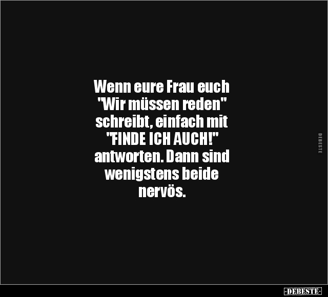 Wenn eure Frau euch "Wir müssen reden" schreibt, einfach mit "FINDE ICH AUCH!" antworten. Dann sind wenigstens beide nervös.