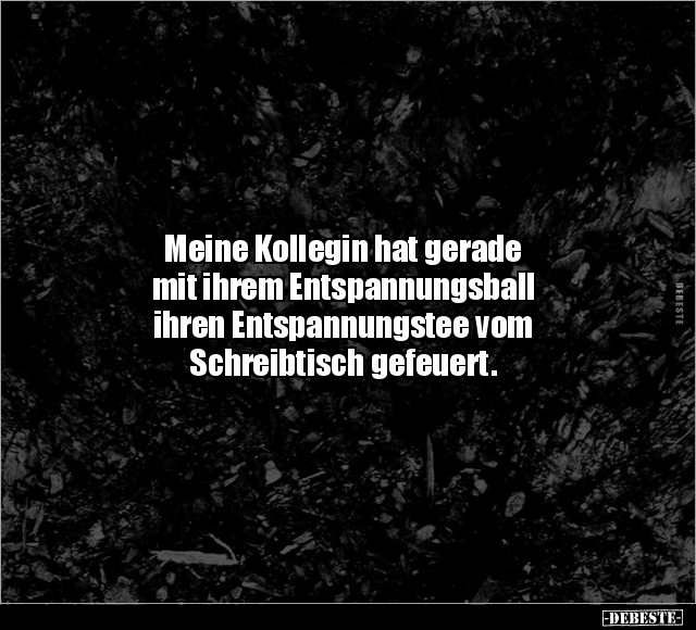Meine Kollegin hat gerade mit ihrem Entspannungsball ihren Entspannungstee vom Schreibtisch gefeuert.