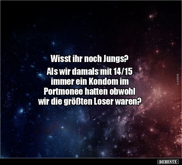 Wisst ihr noch Jungs? Als wir damals mit 14/15 immer ein Kondom im Portmonee hatten obwohl wir die größten Loser waren?