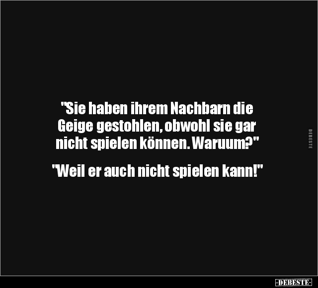 "Sie haben ihrem Nachbarn die Geige gestohlen, obwohl sie gar nicht spielen können. Waruum?" "Weil er auch nicht spielen kann!"
