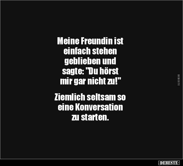 Meine Freundin ist einfach stehen geblieben und sagte: "Du hörst mir gar nicht zu!" Ziemlich seltsam so eine Konversation zu starten.