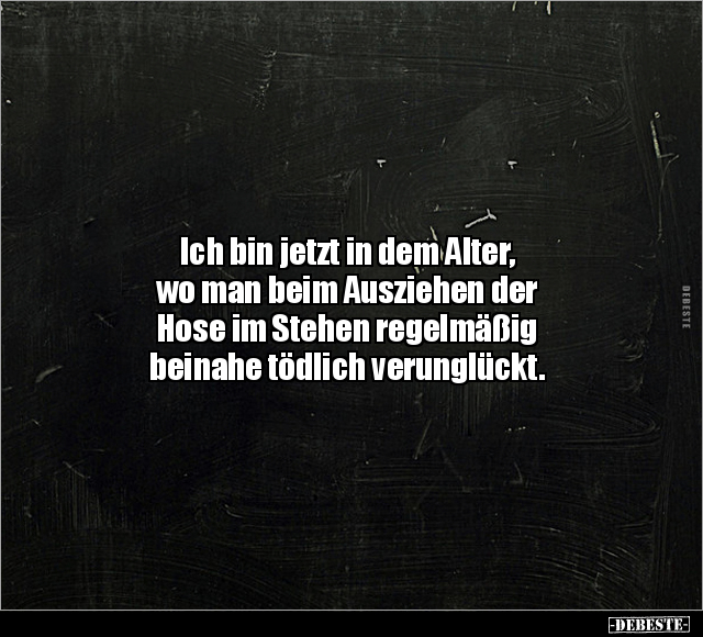 Ich bin jetzt in dem Alter, wo man beim Ausziehen der Hose im Stehen regelmäßig beinahe tödlich verunglückt.