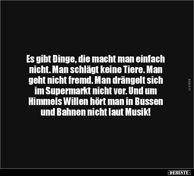 Es gibt Dinge, die macht man einfach nicht. Man schlägt keine Tiere. Man geht nicht fremd. Man drängelt sich im Supermarkt nicht vor. Und um Himmels Willen hört man in Bussen und Bahnen nicht laut Musik!