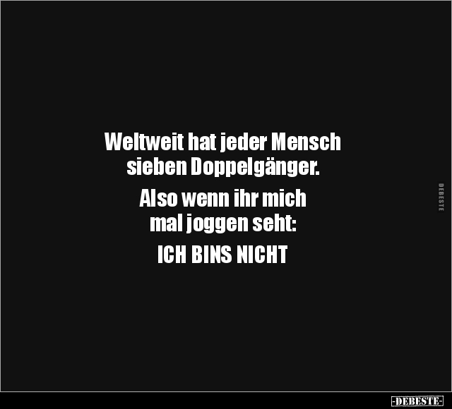 Weltweit hat jeder Mensch sieben Doppelgänger. Also wenn ihr mich mal joggen seht: ICH BINS NICHT