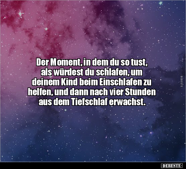 Der Moment, in dem du so tust, als würdest du schlafen, um deinem Kind beim Einschlafen zu helfen, und dann nach vier Stunden aus dem Tiefschlaf erwachst.
