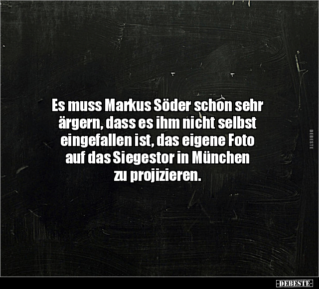 Es muss Markus Söder schon sehr ärgern, dass es ihm nicht selbst eingefallen ist, das eigene Foto auf das Siegestor in München zu projizieren.