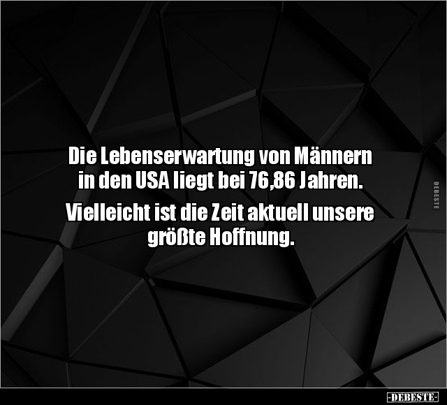Die Lebenserwartung von Männern in den USA liegt bei 76,86 Jahren. Vielleicht ist die Zeit aktuell unsere größte Hoffnung.