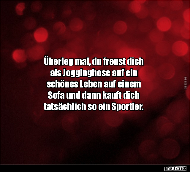 Überleg mal, du freust dich als Jogginghose auf ein schönes Leben auf einem Sofa und dann kauft dich tatsächlich so ein Sportler.