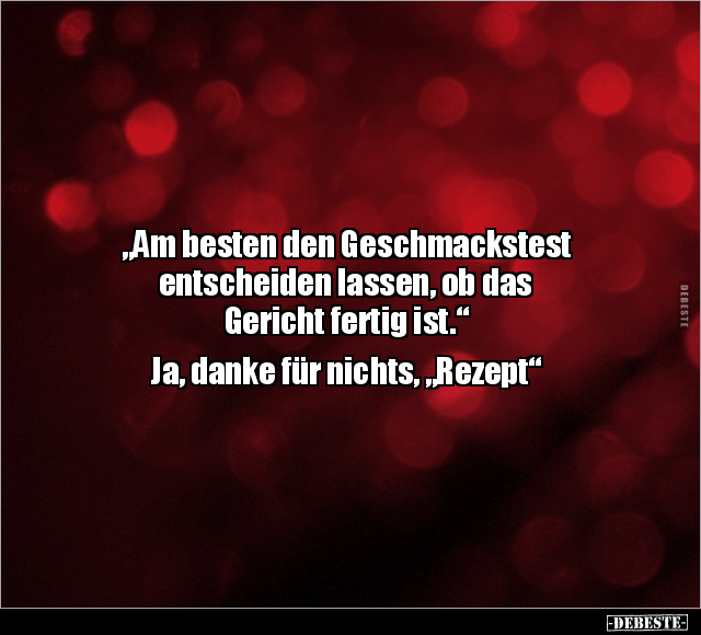 „Am besten den Geschmackstest entscheiden lassen, ob das Gericht fertig ist.“ Ja, danke für nichts, „Rezept“