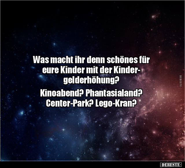 Was macht ihr denn schönes für eure Kinder mit der Kinder- gelderhöhung? Kinoabend? Phantasialand? Center-Park? Lego-Kran?