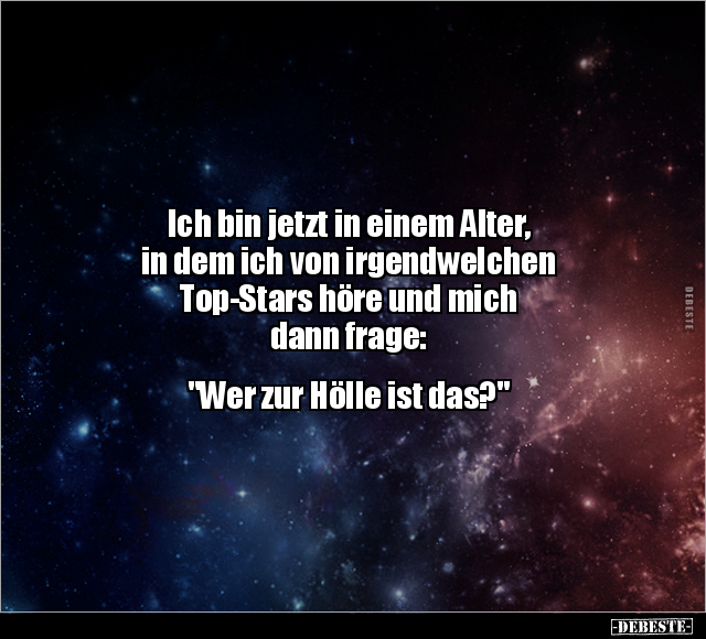 Ich bin jetzt in einem Alter, in dem ich von irgendwelchen Top-Stars höre und mich dann frage: "Wer zur Hölle ist das?"