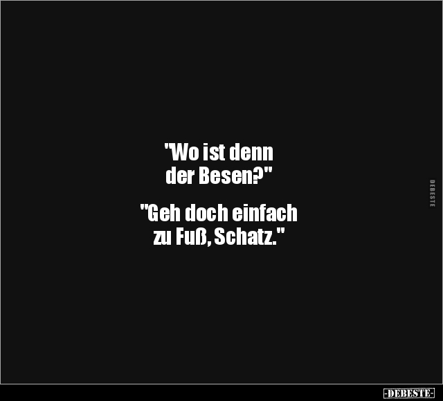 "Wo ist denn der Besen?" "Geh doch einfach zu Fuß, Schatz."