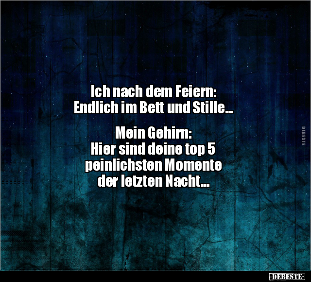 Ich nach dem Feiern: Endlich im Bett und Stille... Mein Gehirn: Hier sind deine top 5 peinlichsten Momente der letzten Nacht...