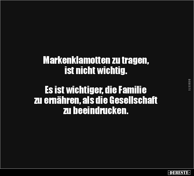 Markenklamotten zu tragen, ist nicht wichtig. Es ist wichtiger, die Familie zu ernähren, als die Gesellschaft zu beeindrucken.