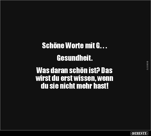 Schöne Worte mit G. . . Gesundheit. Was daran schön ist? Das wirst du erst wissen, wenn du sie nicht mehr hast!