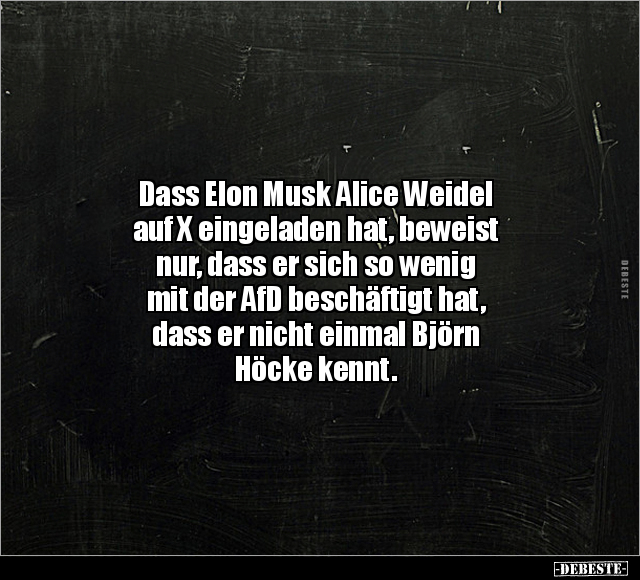 Dass Elon Musk Alice Weidel auf X eingeladen hat, beweist nur, dass er sich so wenig mit der AfD beschäftigt hat, dass er nicht einmal Björn Höcke kennt.