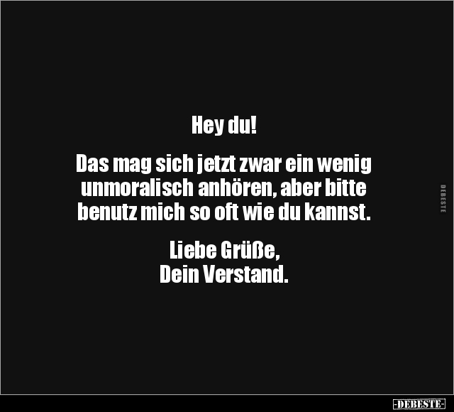 Hey du! Das mag sich jetzt zwar ein wenig unmoralisch anhören, aber bitte benutz mich so oft wie du kannst. Liebe Grüße, Dein Verstand.