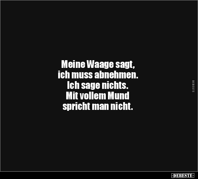 Meine Waage sagt, ich muss abnehmen. Ich sage nichts. Mit vollem Mund spricht man nicht.
