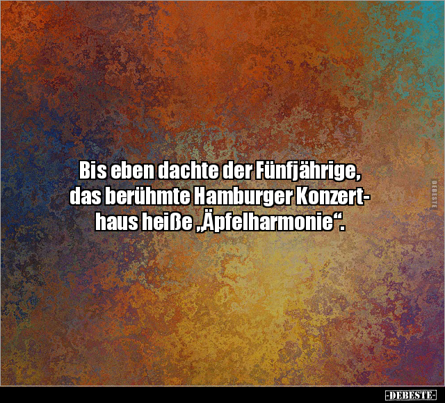 Bis eben dachte der Fünfjährige, das berühmte Hamburger Konzert- haus heiße „Äpfelharmonie“.