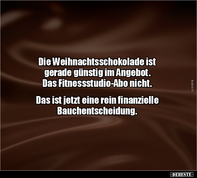 Die Weihnachtsschokolade ist gerade günstig im Angebot. Das Fitnessstudio-Abo nicht. Das ist jetzt eine rein finanzielle Bauchentscheidung.