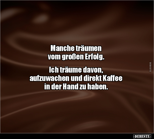 Manche träumen vom großen Erfolg. Ich träume davon, aufzuwachen und direkt Kaffee in der Hand zu haben.