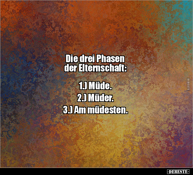 Die drei Phasen der Elternschaft: 1.) Müde. 2.) Müder. 3.) Am müdesten.