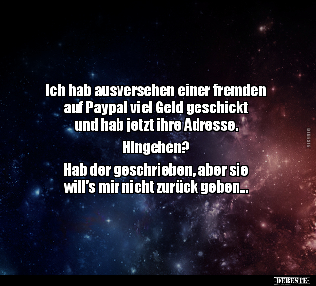 Ich hab ausversehen einer fremden auf Paypal viel Geld geschickt und hab jetzt ihre Adresse. Hingehen? Hab der geschrieben, aber sie will’s mir nicht zurück geben...