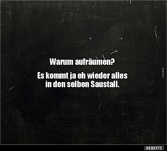 Warum aufräumen? Es kommt ja eh wieder alles in den selben Saustall.