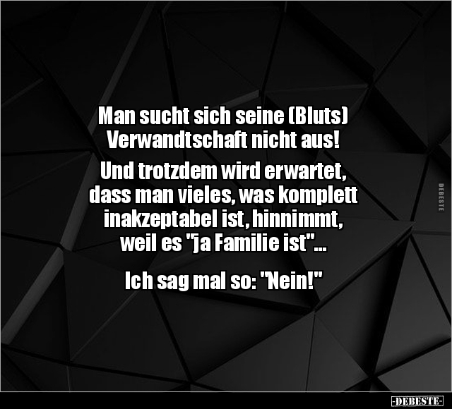 Man sucht sich seine (Bluts) Verwandtschaft nicht aus! Und trotzdem wird erwartet, dass man vieles, was komplett inakzeptabel ist, hinnimmt, weil es "ja Familie ist"... Ich sag mal so: "Nein!"