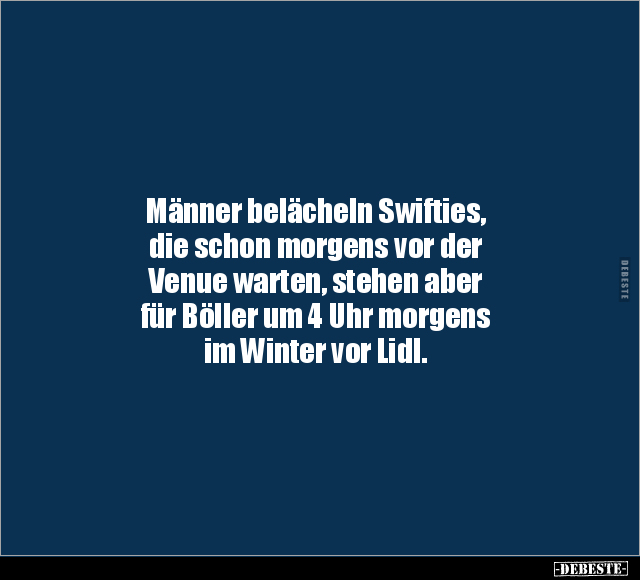 Männer belächeln Swifties, die schon morgens vor der Venue warten, stehen aber für Böller um 4 Uhr morgens im Winter vor Lidl.