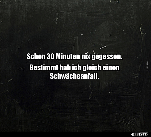 Schon 30 Minuten nix gegessen. Bestimmt hab ich gleich einen Schwächeanfall.