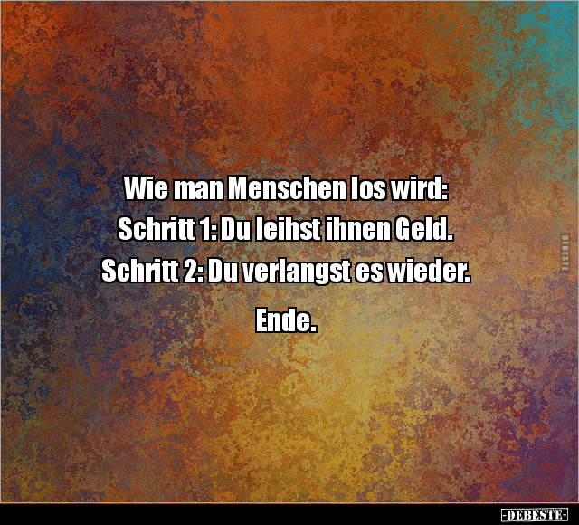Wie man Menschen los wird: Schritt 1: Du leihst ihnen Geld. Schritt 2: Du verlangst es wieder. Ende.