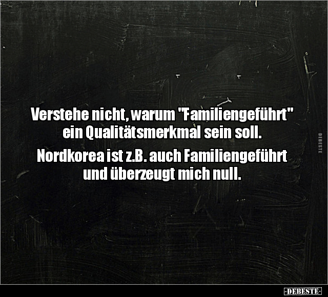Verstehe nicht, warum "Familiengeführt" ein Qualitätsmerkmal sein soll. Nordkorea ist z.B. auch Familiengeführt und überzeugt mich null.