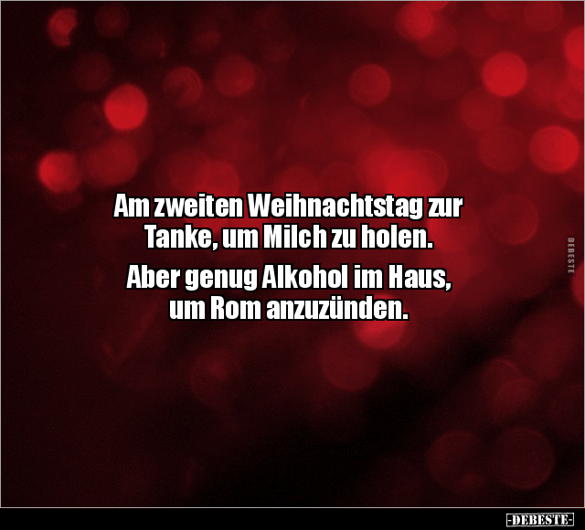 Am zweiten Weihnachtstag zur Tanke, um Milch zu holen. Aber genug Alkohol im Haus, um Rom anzuzünden.