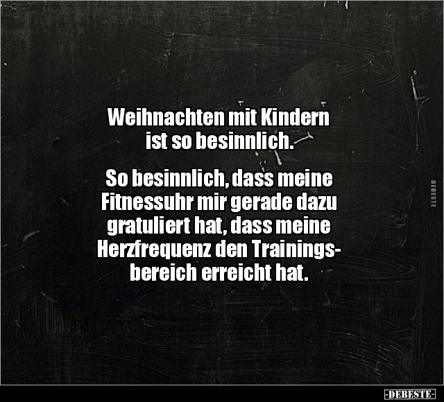 Weihnachten mit Kindern ist so besinnlich. So besinnlich, dass meine Fitnessuhr mir gerade dazu gratuliert hat, dass meine Herzfrequenz den Trainings- bereich erreicht hat.