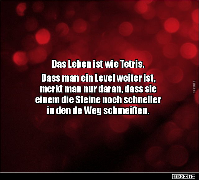 Das Leben ist wie Tetris. Dass man ein Level weiter ist, merkt man nur daran, dass sie einem die Steine noch schneller in den de Weg schmeißen.