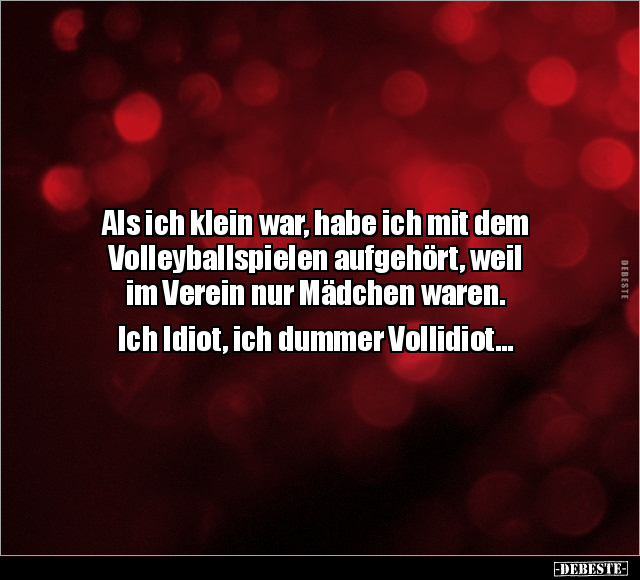 Als ich klein war, habe ich mit dem Volleyballspielen aufgehört, weil im Verein nur Mädchen waren. Ich Idiot, ich dummer Vollidiot...