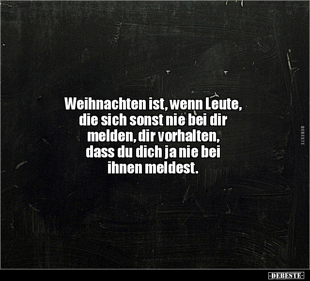 Weihnachten ist, wenn Leute, die sich sonst nie bei dir melden, dir vorhalten, dass du dich ja nie bei ihnen meldest.