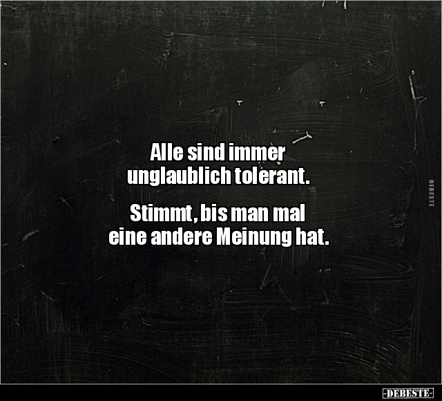 Alle sind immer unglaublich tolerant. Stimmt, bis man mal eine andere Meinung hat.