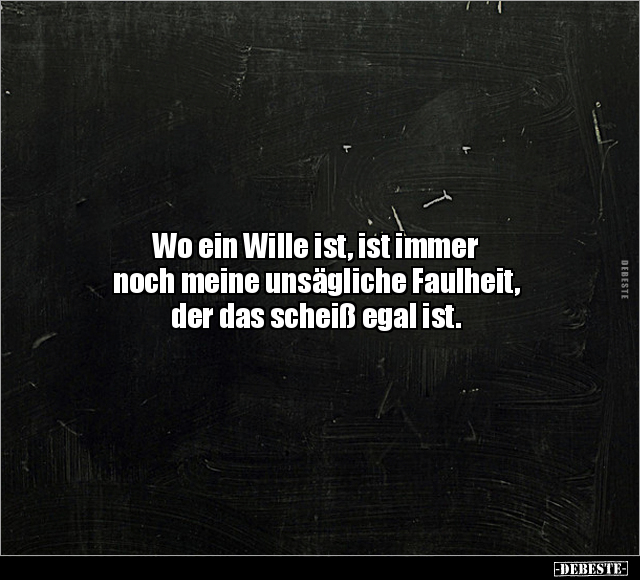 Wo ein Wille ist, ist immer noch meine unsägliche Faulheit, der das scheiß egal ist.