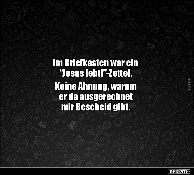 Im Briefkasten war ein “Jesus lebt!”-Zettel. Keine Ahnung, warum er da ausgerechnet mir Bescheid gibt.