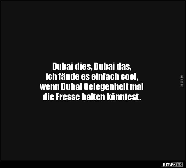 Dubai dies, Dubai das, ich fände es einfach cool, wenn Dubai Gelegenheit mal die Fresse halten könntest.