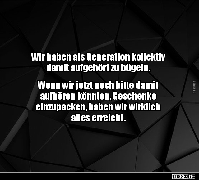 Wir haben als Generation kollektiv damit aufgehört zu bügeln. Wenn wir jetzt noch bitte damit aufhören könnten, Geschenke einzupacken, haben wir wirklich alles erreicht.