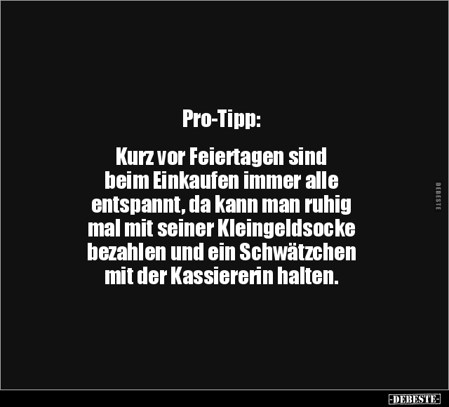Pro-Tipp: Kurz vor Feiertagen sind beim Einkaufen immer alle entspannt, da kann man ruhig mal mit seiner Kleingeldsocke bezahlen und ein Schwätzchen mit der Kassiererin halten.
