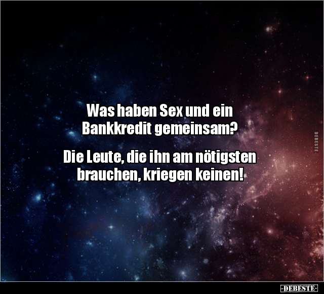 Was haben Sex und ein Bankkredit gemeinsam? Die Leute, die ihn am nötigsten brauchen, kriegen keinen!