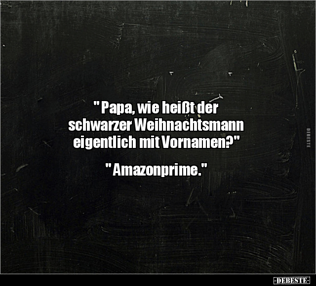 " Papa, wie heißt der schwarzer Weihnachtsmann eigentlich mit Vornamen?" " Amazonprime."
